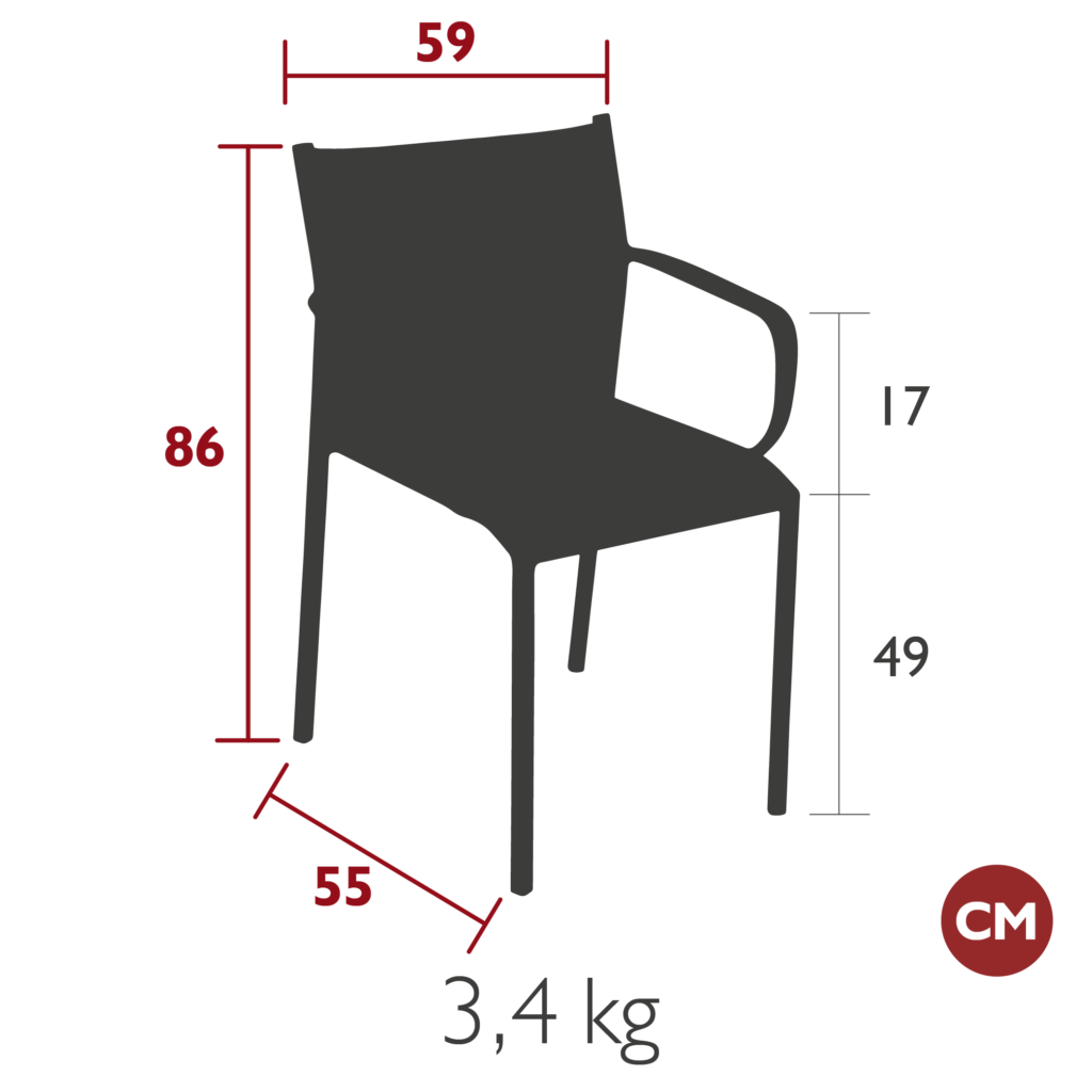 Structure fil acier. Assise tôle acier perforé(e). Dossier fil acier. Accoudoir(s) fil acier.